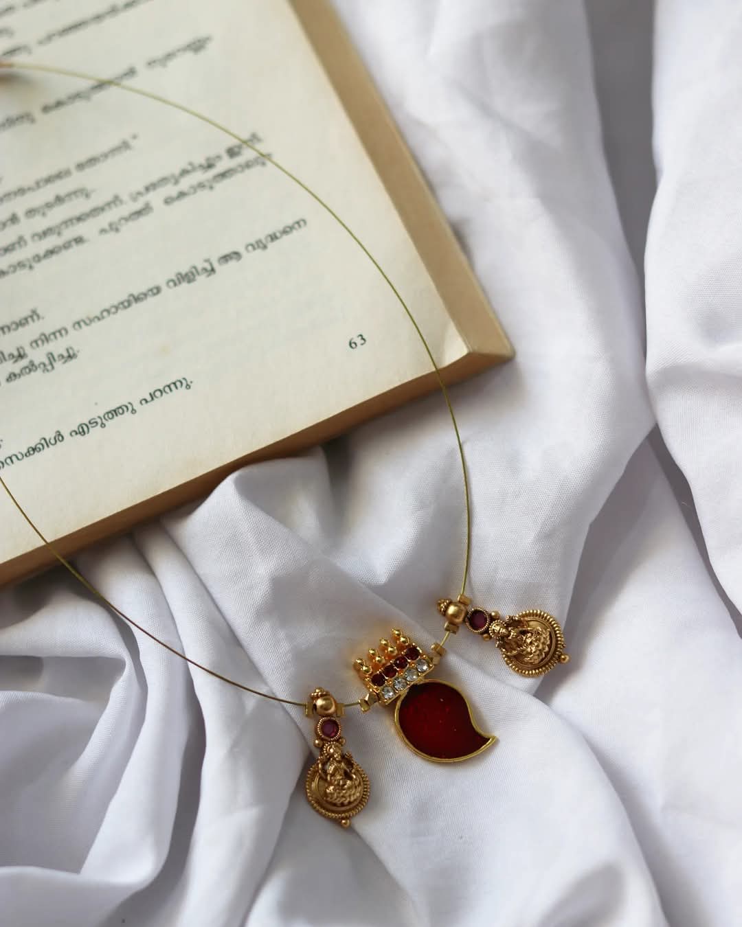 Enamelled Mango Pendant With Lakshmi Engraved Pendants Handmade Necklace