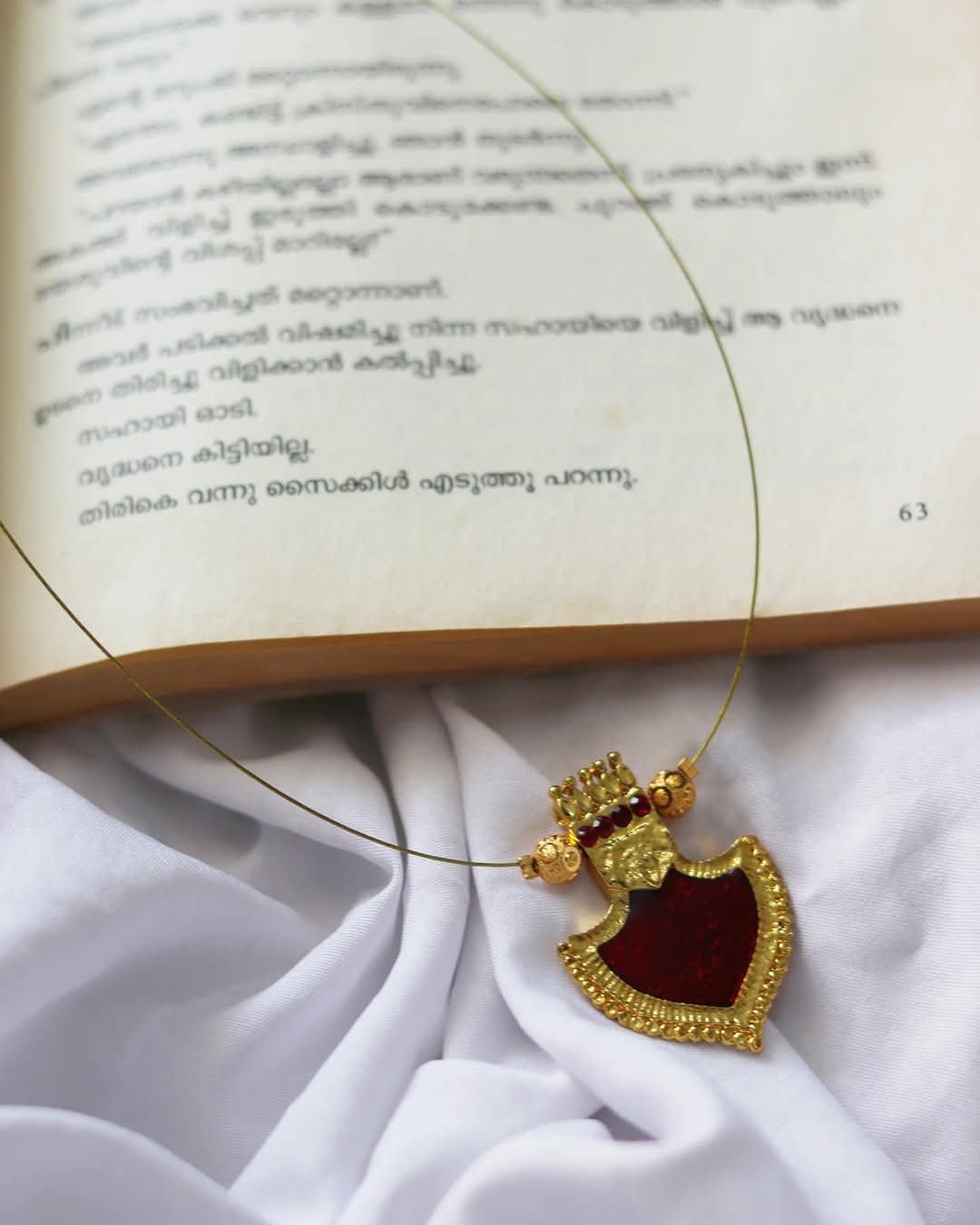 Enamelled Red Nagapadam Pendant With Golden Balls Handmade Necklace