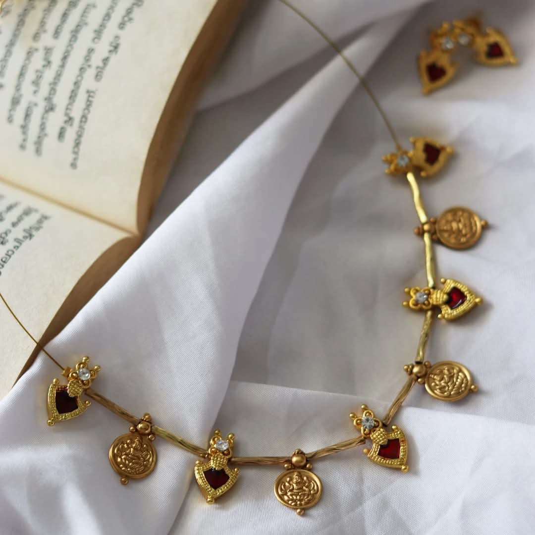 Palakka Pendant With Lakshmi Coins Handmade Necklace