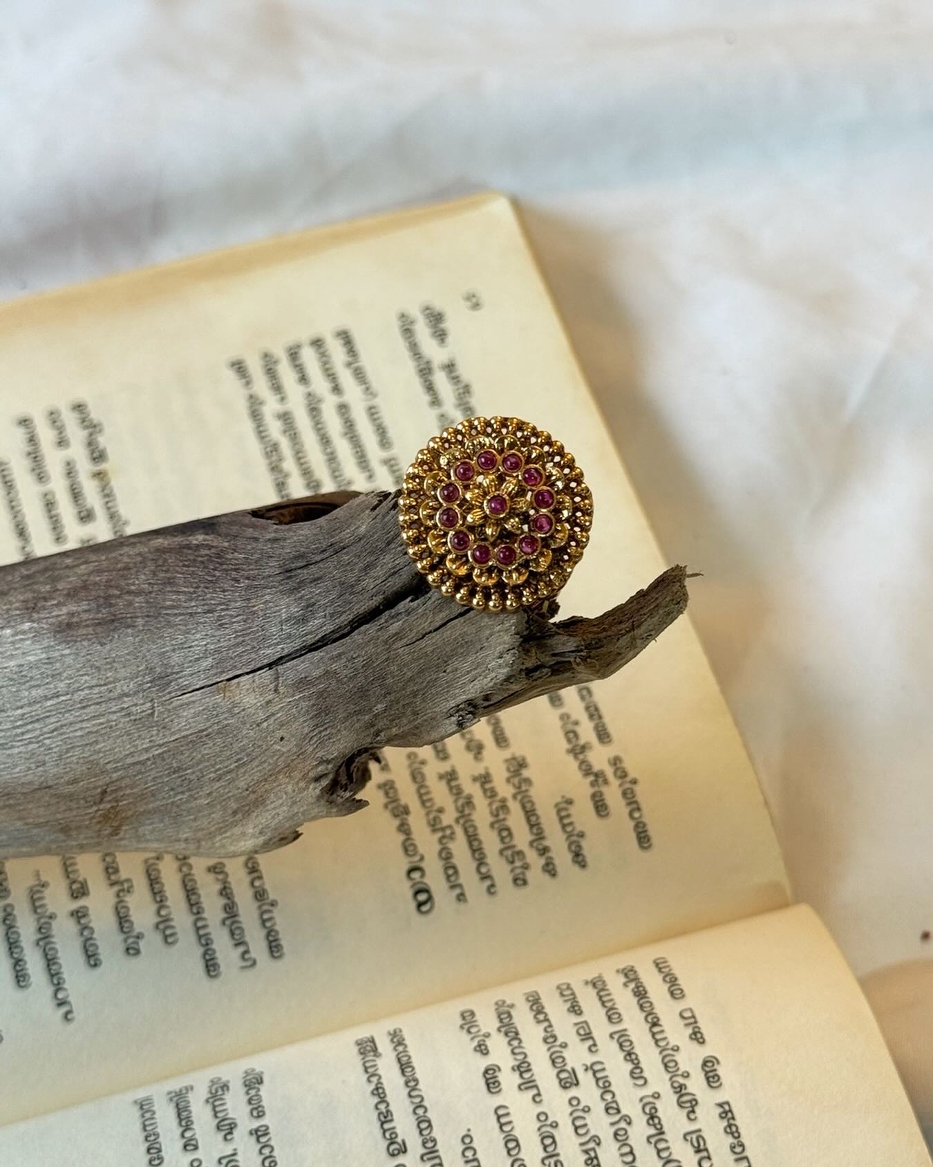 Premium Quality Ruby Stones In Flower Design Gold Ring